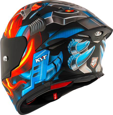 • KYT R1R Racing Helm Carbon Diamond Blau / Orange Y6R10006