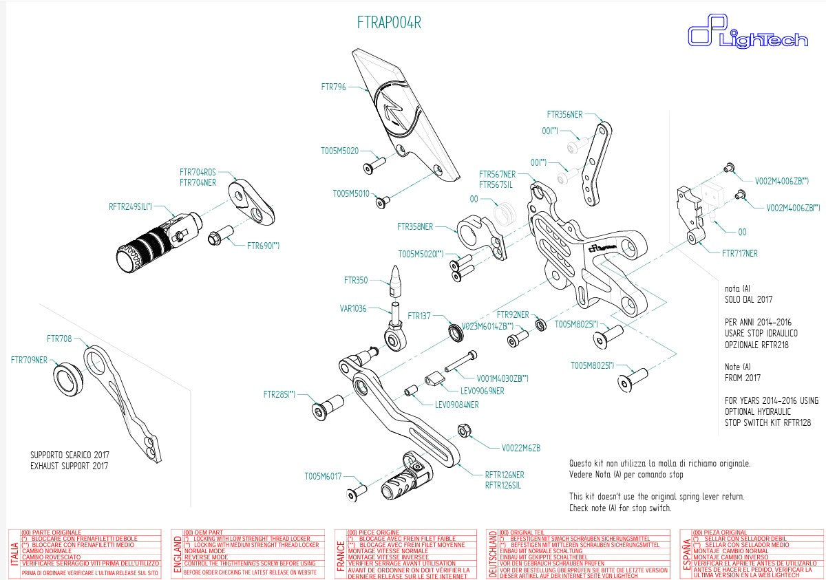 Fußrastenanlage R LighTech Aprilia RSV4/Factory/R/RR/RF (09-16) FTRAP004R