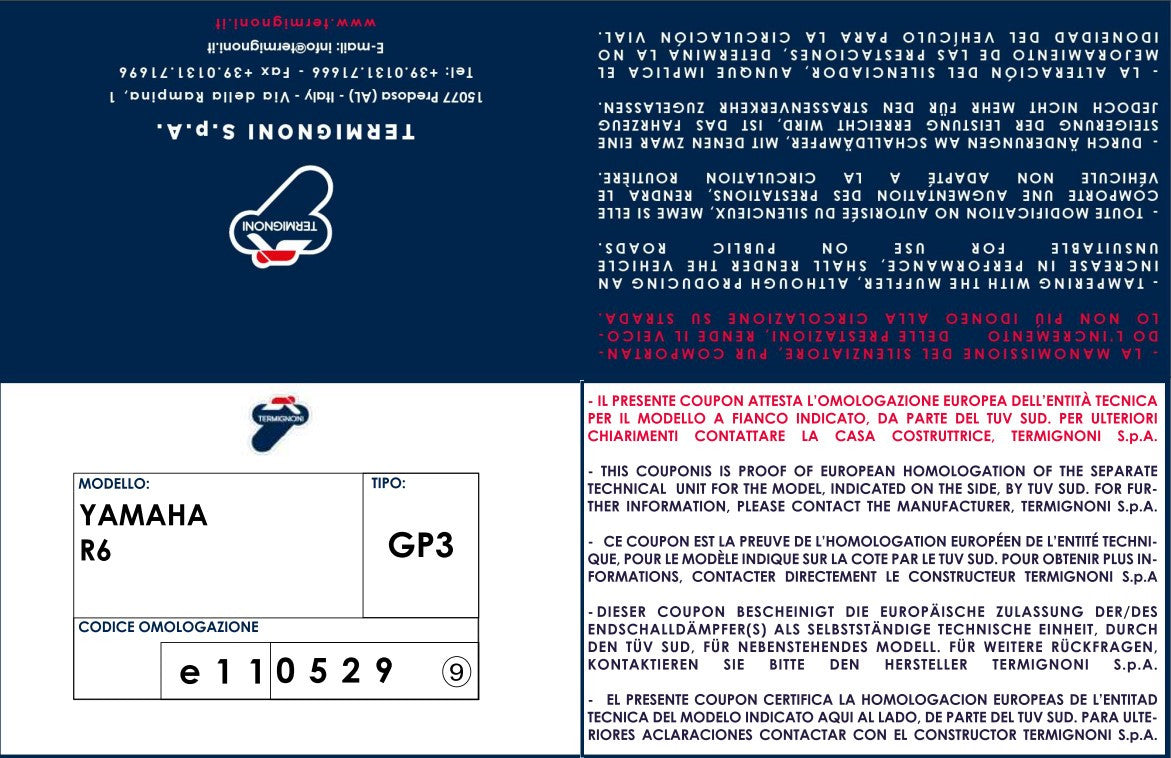 Termignoni Slip-On Classic-GP High Yamaha YZF-R6 (06-25) Y077080CR