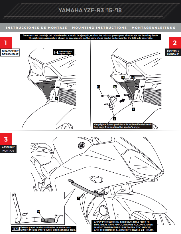 Puig Winglets Spoiler Downforce Yamaha YZF-R3 (15-18) 3171